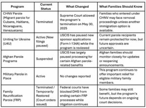 Parole Program Updates for Families