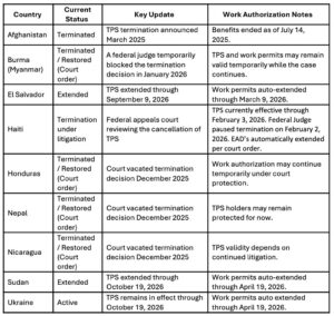 Immigration programs that protect families through Temporary Protected Status (TPS) and humanitarian parole continue to change quickly in 2026. Several programs have been terminated, paused, or are currently being challenged in federal court.